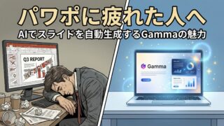 デザインが苦手でもプロ品質のプレゼン資料が作れるAIツール「Gamma」を解説。フォント・色・レイアウト・画像をAIが自動で整える仕組みと、次世代プレゼンツールと呼ばれる理由、デザイン苦手な方向けの活用コツを紹介。