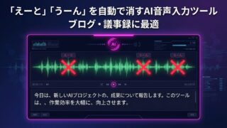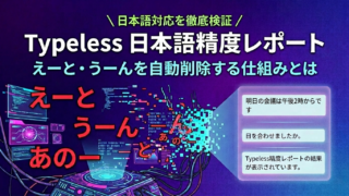 「えーと」「うーん」「あのー」を自動で消せるAI音声入力ツールの選び方と活用法を解説。Typelessはフィラーワードを文脈で判断して削除。ブログ執筆・議事録・メール作成がクリーンなテキストで完成。