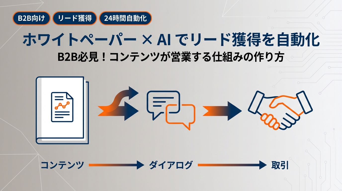 「ホワイトペーパーをサイトに置いているのに、ダウンロード後に商談につながらない」「せっかく質の高いコンテンツを作っても、リードが温まらないまま終わる」「コンテンツマーケティングへの投資対効果が見えにくい」——B2Bマーケティング担当者なら、こうしたジレンマを感じたことがあるはずです。