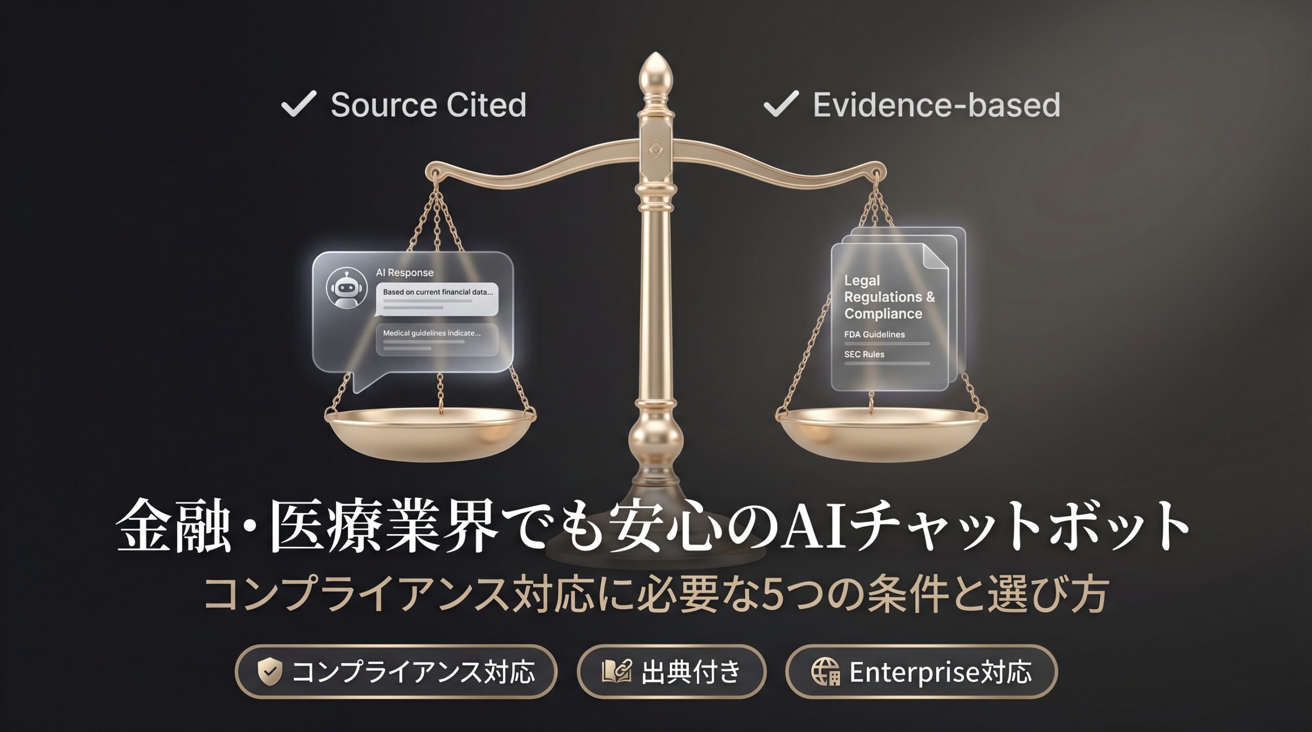 「AIチャットボットを導入したいが、誤った情報を提供してしまったら法的責任はどうなるのか」「根拠のない回答が出てしまったら、コンプライアンス違反になりかねない」「IT部門・法務部門からAI導入への承認がなかなか下りない」——金融・医療業界でのAI導入検討において、こうした懸念は避けて通れません。