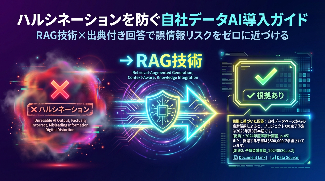 「ChatGPTを業務に使ってみたら、もっともらしい嘘をつかれた」「AIが自信満々に間違った情報を答えて、顧客に誤案内してしまった」「ハルシネーションが怖くてAI導入に踏み切れない」——AI活用に関心を持ちながらも、ハルシネーション(誤情報生成)への不安から導入を躊躇している企業は多いです。