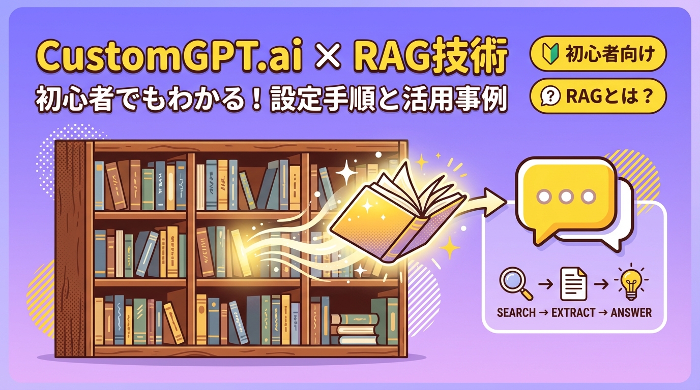 本記事では、初心者の方に向けて「RAGとは何か」をわかりやすく解説しながら、CustomGPT.aiの設定手順と具体的な活用事例をあわせて紹介します。