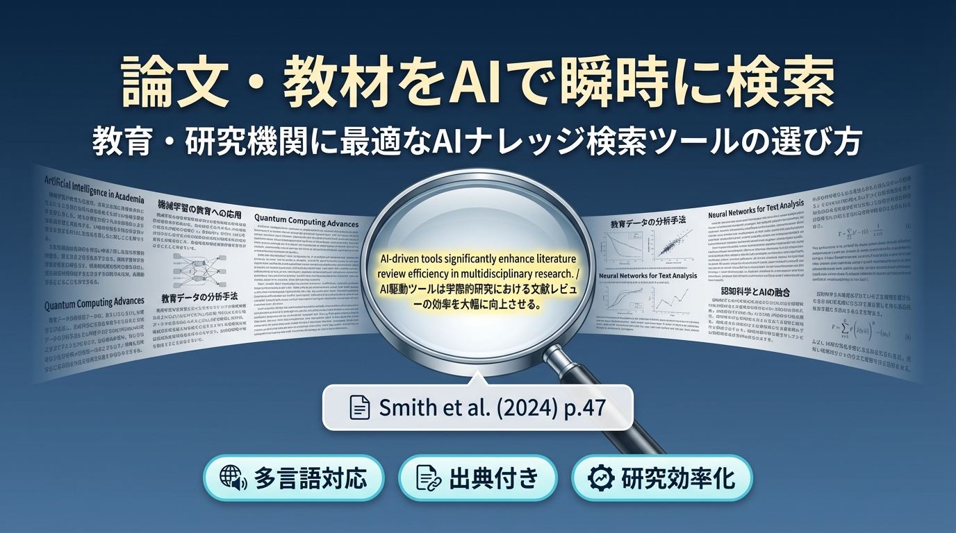 「数百本の論文の中から関連する先行研究を探すのに何時間もかかる」「教材のどこに何が書いてあるか覚えきれず、毎回最初から読み直している」「研究室に蓄積されたデータやノートが属人化していて、メンバーが共有できていない」——教育・研究の現場で日常的に起きているこうした「知識の検索コスト」の問題、AIで解決できるとしたら?