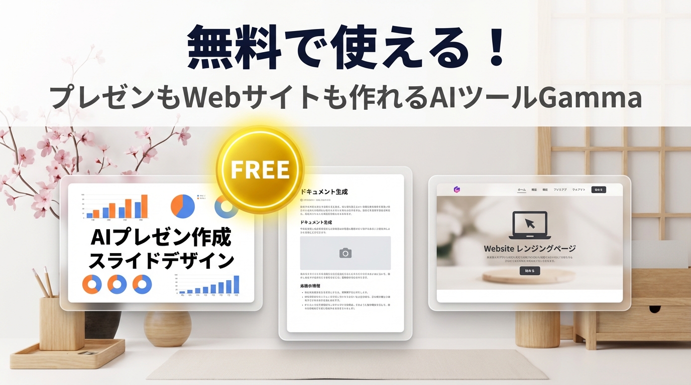 Gammaは無料から始められて、プレゼン資料・ドキュメント・Webサイトの3種類をAIで自動生成できるツールです。本記事では、無料でどこまで使えるのか、何が作れるのかを徹底解説します。