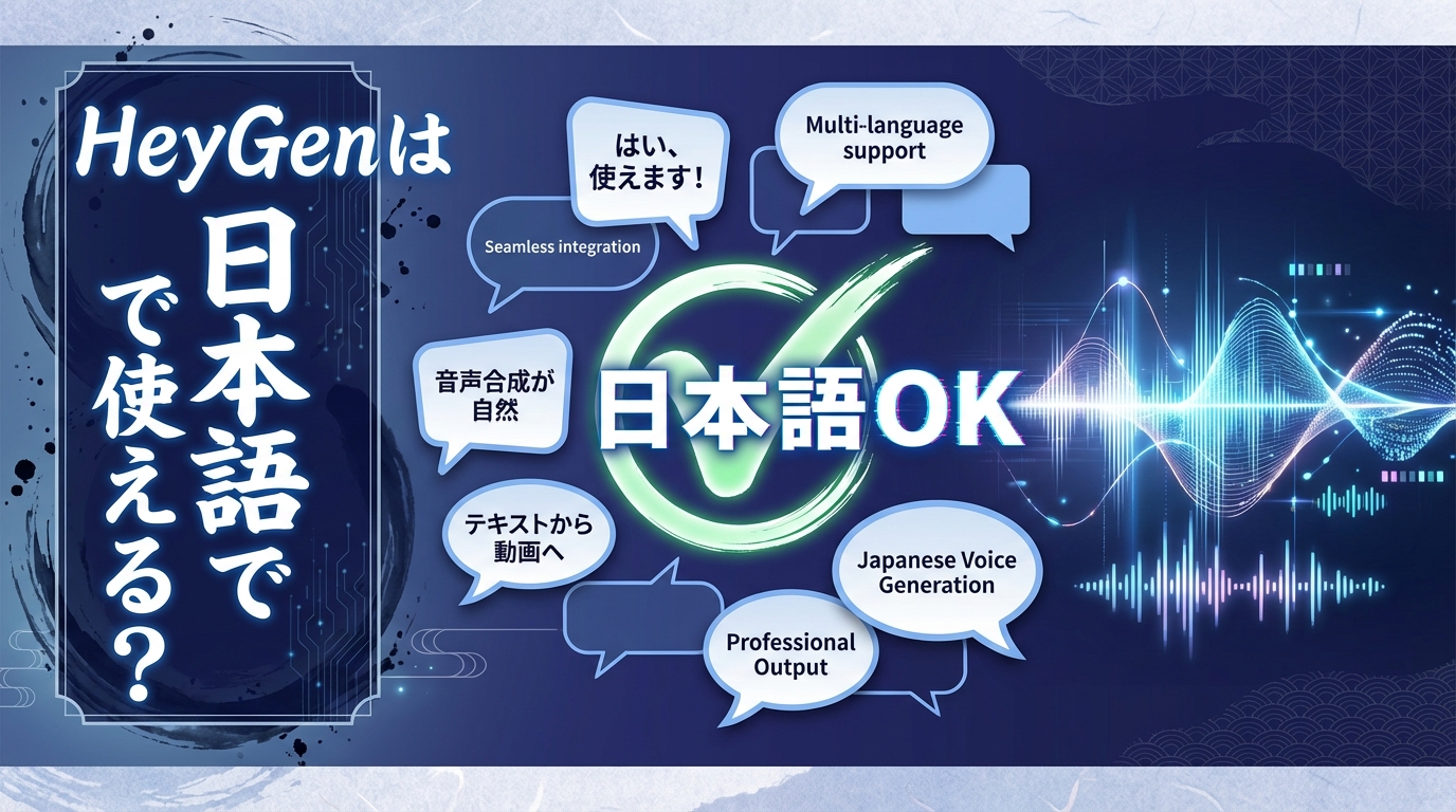 「HeyGenは英語のツールだから、日本語では使いにくいんじゃないか?」「日本語の音声は不自然に聞こえないか?」「操作画面が英語だらけで迷わないか?」——日本人ユーザーにとって、日本語対応状況は導入前の最大の不安ポイントの一つです。